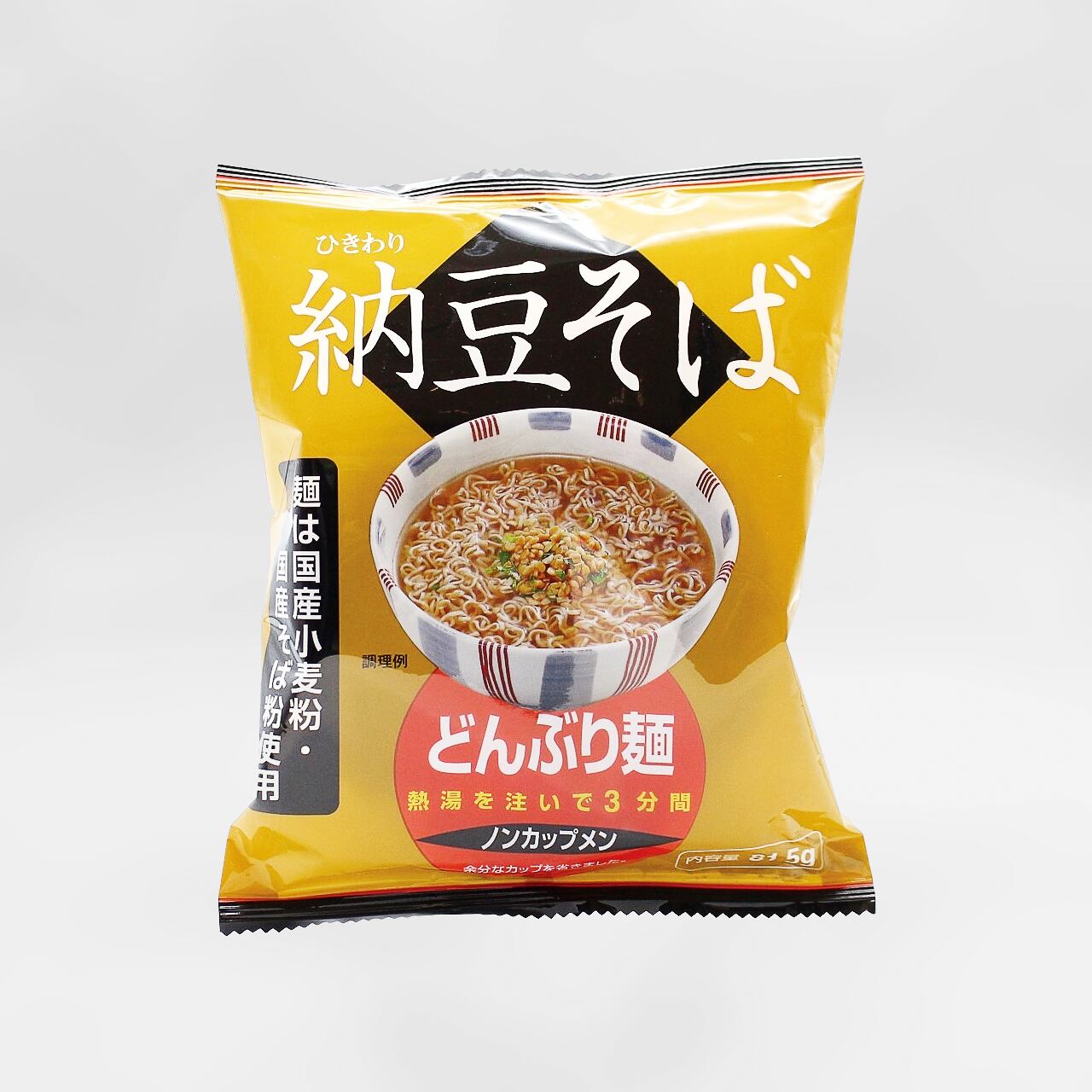 どんぶりに入れて熱湯を注ぐだけで手軽に食べられる「ノンカップメン」。国内産ひきわり納豆入りのおそばです。